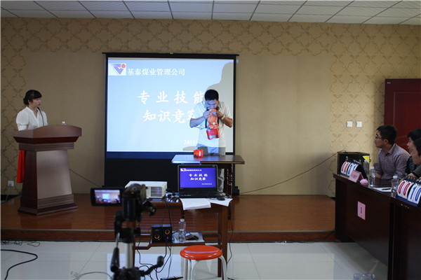 基泰煤業(yè)公司副總經(jīng)理劉萬聰為本次活動致辭。此次競賽分為兩個階段:第一階段知識競賽,第二階段技能競賽。第一階段分為三個環(huán)節(jié):第一環(huán)節(jié),個人必答題,共進行12輪,每輪每組選手必答1道題;第二環(huán)節(jié),搶答題,共進行20個搶答題。第三環(huán)節(jié),風險題,進行2輪風險題。選手采取選擇形式答題,分1分、2分、3分三種題型,由參賽隊自行選擇。第二階段:專業(yè)技能測試,包括三個比賽項目:正確配戴自救器、甲烷檢測儀的正確使用、煤塵檢測儀的正確使用。