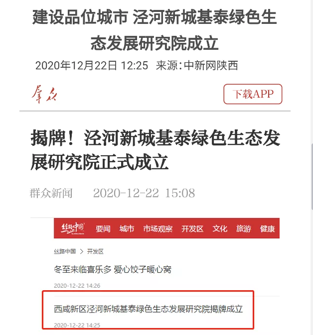 12月20日上午,以"綠色生態(tài)發(fā)展 構筑美好生活"為主題的西咸新區(qū)涇河新城基泰綠色生態(tài)發(fā)展研究院揭牌儀式在涇河新城上松苑隆重舉行,這一消息得到了中省市20余家媒體的關注,30多個平臺紛紛轉載。