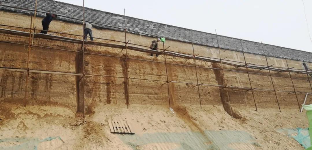 榆林衛(wèi)城東城墻搶險(xiǎn)加固工程正在進(jìn)行尾留工程施工。