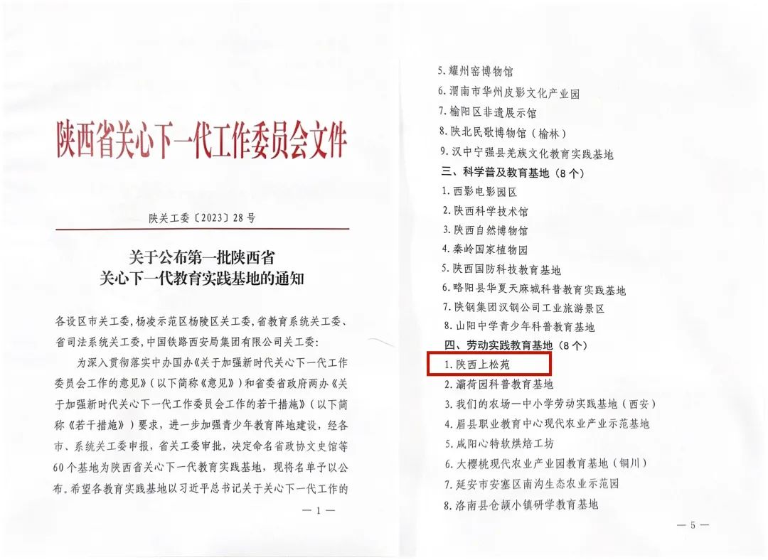 8月11日,陜西省關(guān)工委在省政協(xié)舉行省直屬機關(guān)關(guān)工委成立暨關(guān)心下一代教育實踐基地授牌儀式活動。根據(jù)陜西省關(guān)心下一代工作委員會《關(guān)于公布第一批陜西省關(guān)心下一代教育實踐基地的通知》,陜西上松苑被授予首批勞動實踐教育基地榮譽稱號。