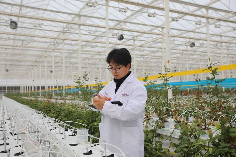 “我們種植玫瑰的溫室是半封閉正壓溫室,此類溫室目前在國內(nèi)應用較少,處于領先水平。得益于智能溫室物聯(lián)網(wǎng)環(huán)控系統(tǒng),我們可以實現(xiàn)無線數(shù)據(jù)采集。溫室內(nèi)安裝的傳感器,可以遠程獲取溫室內(nèi)外溫度、濕度、光照、風速、病蟲害監(jiān)測等,隨后傳輸至終端,技術人員可以利用該系統(tǒng)直接調(diào)節(jié)室內(nèi)溫、光、水、肥、氣等,使得作物能處于最佳生長環(huán)境中,實現(xiàn)全人工智能化生產(chǎn)管理和全天候、全季節(jié)生產(chǎn)。”基泰園藝示范園技術負責人王鵬鵬告訴記者,相比傳統(tǒng)溫室相比,半封閉正壓溫室可以降低內(nèi)部環(huán)境污染的風險,在減少熱能消耗的同時還可以讓作物產(chǎn)量提高15%—20%。